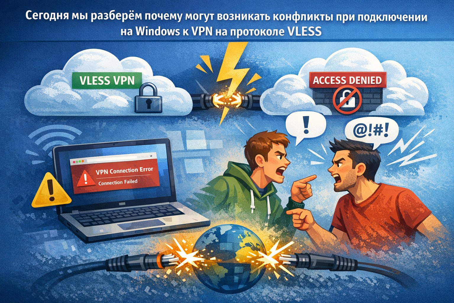 Сегодня мы разберём почему могут возникать конфликты при подключении на windows к VPN на протоколе vless